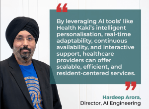 By leveraging Health Kaki’s intelligent personalization, real-time adaptability, continuous availability, and interactive support, healthcare providers can offer scalable, efficient, and resident-centered services, ultimately fostering a healthier and more responsive healthcare environment.
